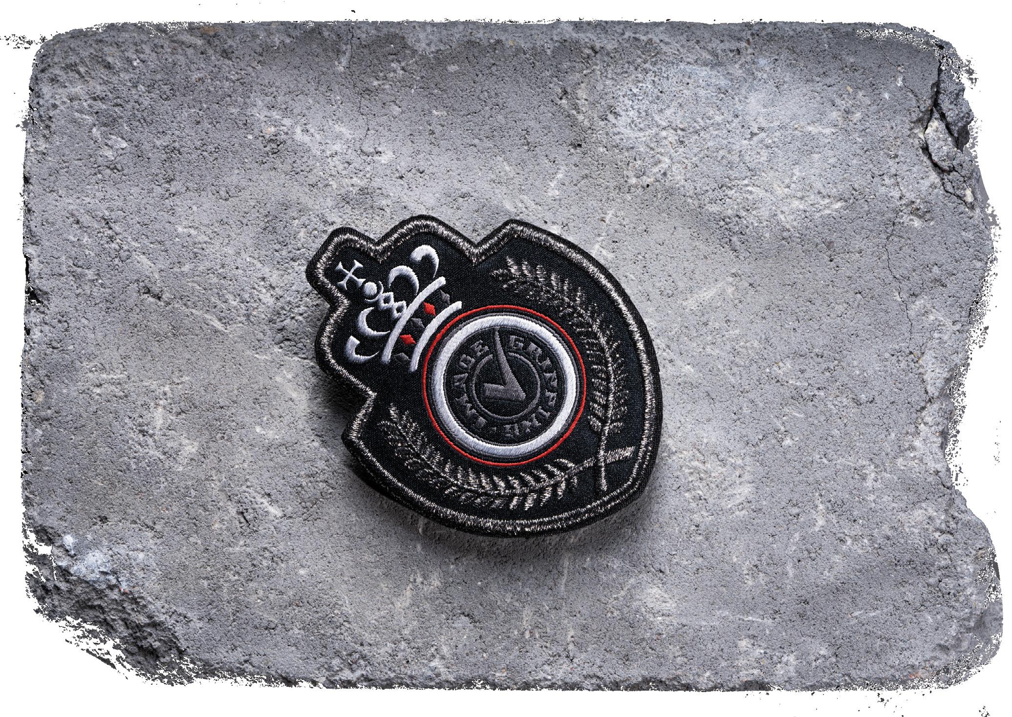 Einsatz auf Arbeitsbekleidung. Aufbringung mittels Transferpresse.