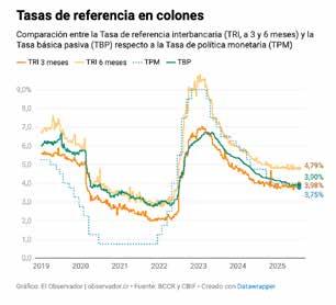 Otro factor que in uyó en la decisión de la Junta Directiva es que la TPM con un nivel de 4% y una in ación que se mantiene en terreno negativo, estaba en valores “ligeramente superiores a los coherentes con una política monetaria neutral”. Con la reducción de 25 puntos base se vuelve a la neutralidad, según Madrigal.