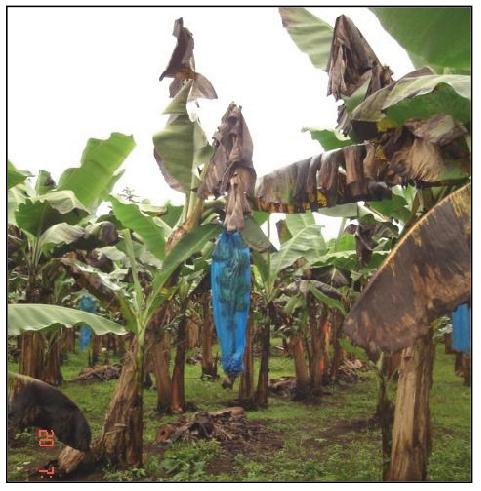Fig.1. Plantación de banano (Musa AAA, cv. Grande Naine) severamente afectada por la Sigatoka negra Combate químico y manejo de la resistencia a fungicidas