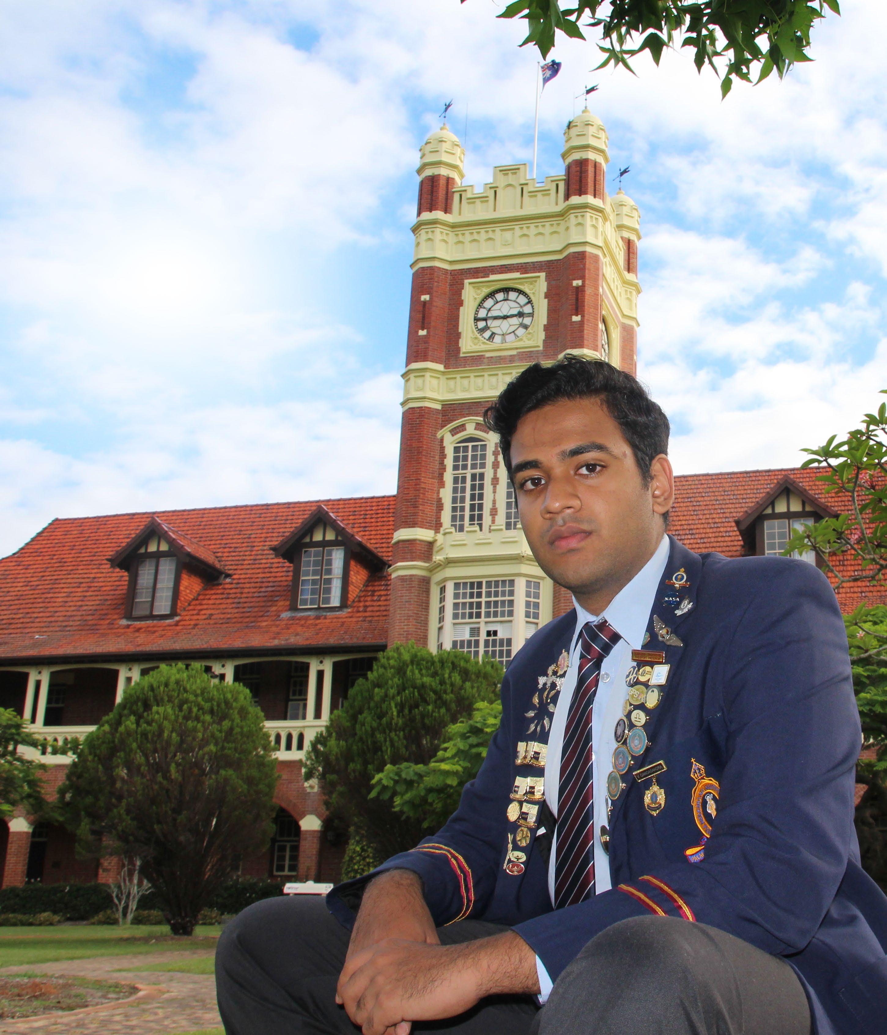 Vishaak receiving the Thelander Shield from then Deputy Headmaster, Mr Andrew Hawkins. This is awarded to the student most involved in the life of the school – sports and extracurricular activities.