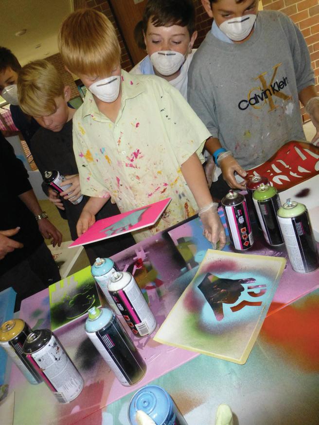Spirit’ by Graham Radcliffe. • Year 3 boys celebrated Book Week by reading the shortlisted My two blankets by Irena Kobald. In response they created their own fabulous community blanket using stitchery, felting, beading and collage. • Year 4 students flexed their construction skills and were challenged to create aircraft models using recycled materials in answer to the question, ‘Is It a Plane?’ • Year 5 investigated the unprecedented Indigenous watercolour art of Albert Namitjira. • Year 6 revelled in translating the gritty urban designs introduced by artists in residence from Kontraband studios on to their very own skateboards.