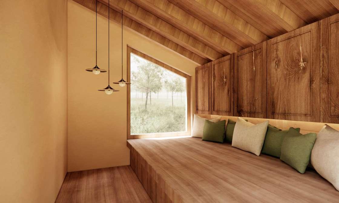 To embody these principles, the salon was constructed using rammed earth, a building material with a long history of use due to its high compressive strength, thermal capacity, and low greenhouse emissions. Additionally, rammed earth has gained popularity in recent years due to its low embodied energy and minimalist, natural aesthetic, making it a fitting choice for a design philosophy centered on wabi-sabi.
