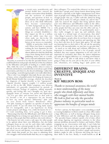Thanks to increased awareness, the world is more understanding of the many people who think differently and those who struggle with their mental health. We look to find out why the specialist finance industry in particular needs to appreciate the benefits of unique minds