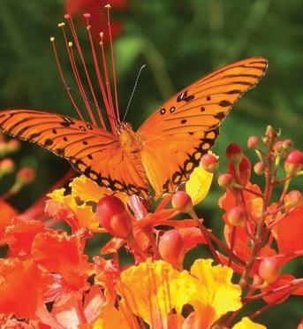 “Gulf fritillary butterflies love this pride of Barbados.”