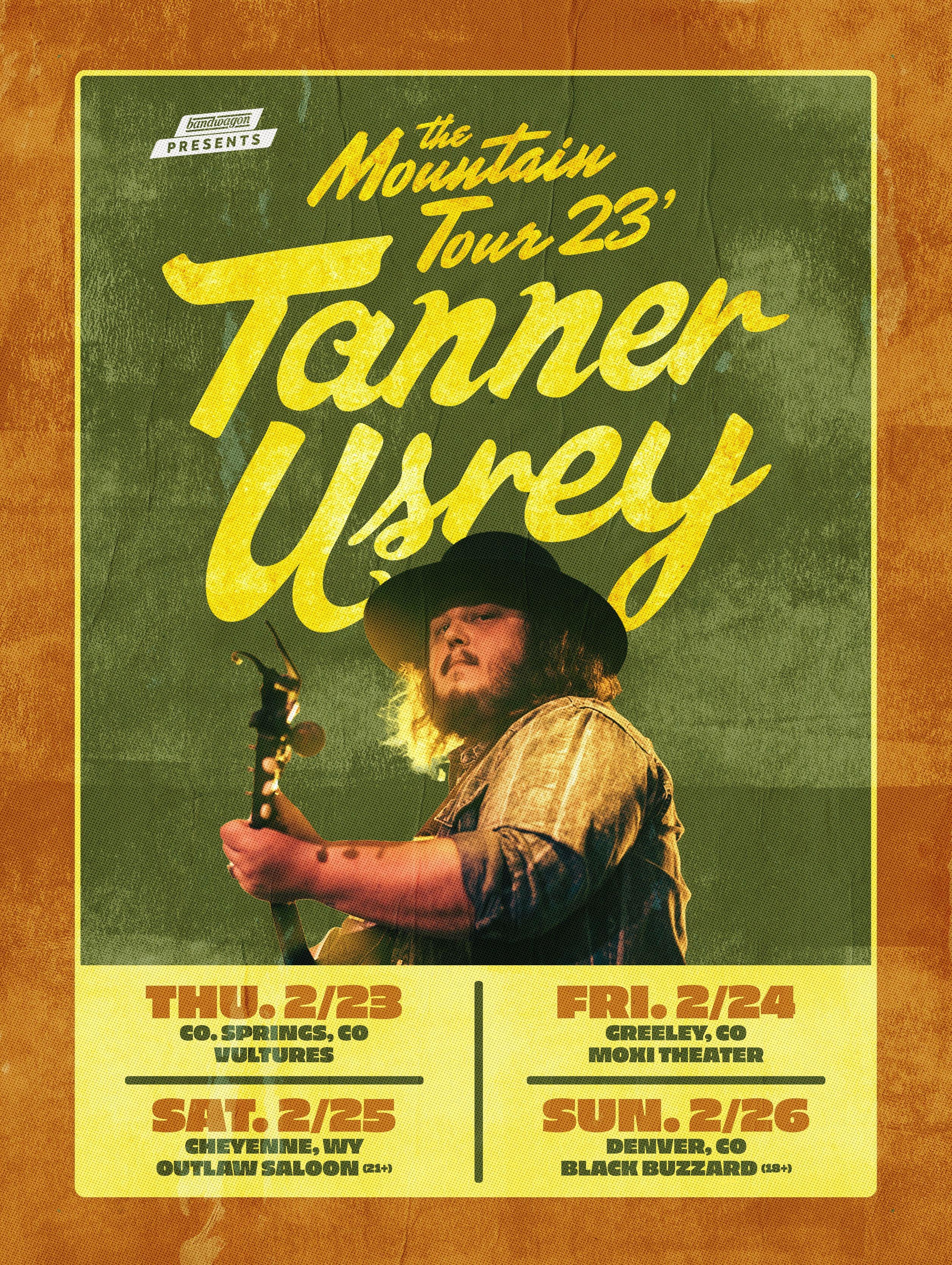 “I THOUGHT IT WAS TOO DIFFERENT,” USREY SAID IN AN INTERVIEW WITH BANDWAGON. “AT THE TIME IT JUST SEEMED … OFF. BUT IT’S DEFINITELY BIG LIVE NOW – AND A FUN SONG TO SING.”PRESENTS THE TANNER USREY MOUNTAIN TOUR ‘23: THURSDAY, FEB 23 AT VULTURES IN COLORADO SPRINGS, CO FEB 24 AT THE MOXI THEATER IN GREELEY, CO