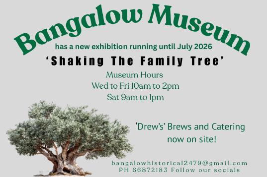 Shaking the Family Tree is a new exhibition celebrating Bangalow’s multicultural heritage. On display are treasured family-owned items that reflect the diverse backgrounds of local residents – from goldfield diaries to heirloom ceramics and wartime photographs. The evolving collection offers insight into the lives and resilience of those who migrated to Australia. Open Wednesdays to Fridays 10am–2pm, Saturdays 9am–1pm. The Historical Society is holding a raffle with a prize of a DNA test, which may – or may not – uncover hidden family secrets.