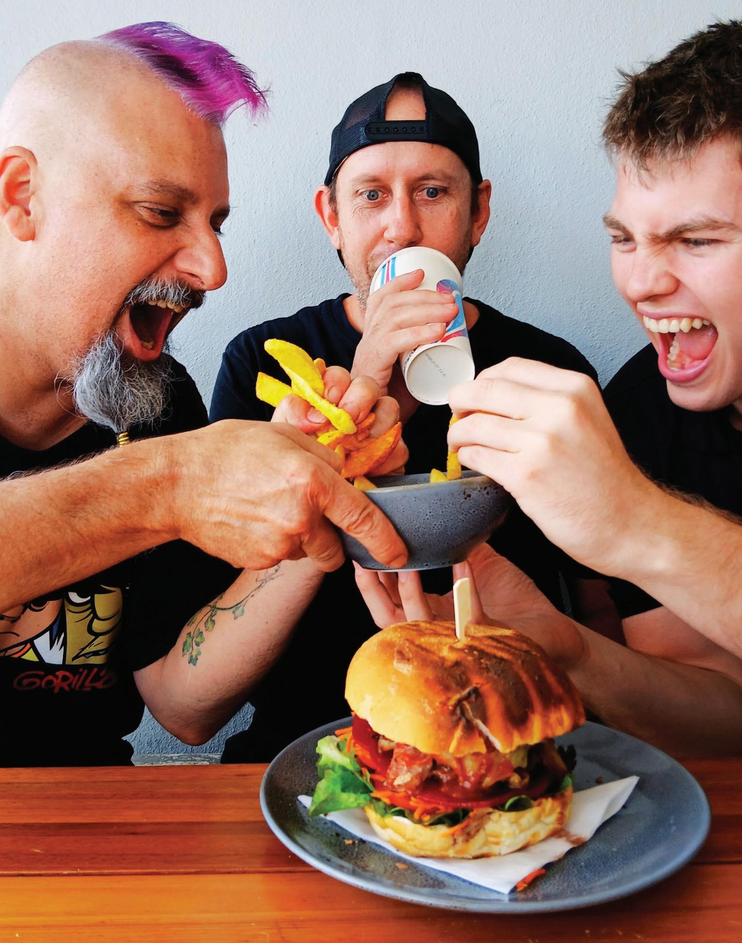 Next door to the Bang Burger Bar is the popular bottle shop, The Cellar Bangalow. Two employees there are already in training for this event. Jack Taylor, who recently moved to the area from Singapore, is a rugby player and a boxer, so is a big eater yearround. He’s dead serious about his intent to win. “I’m not here to be average,” the 18-yearold says. His secret to winning? Not eating breakfast or lunch before the event.