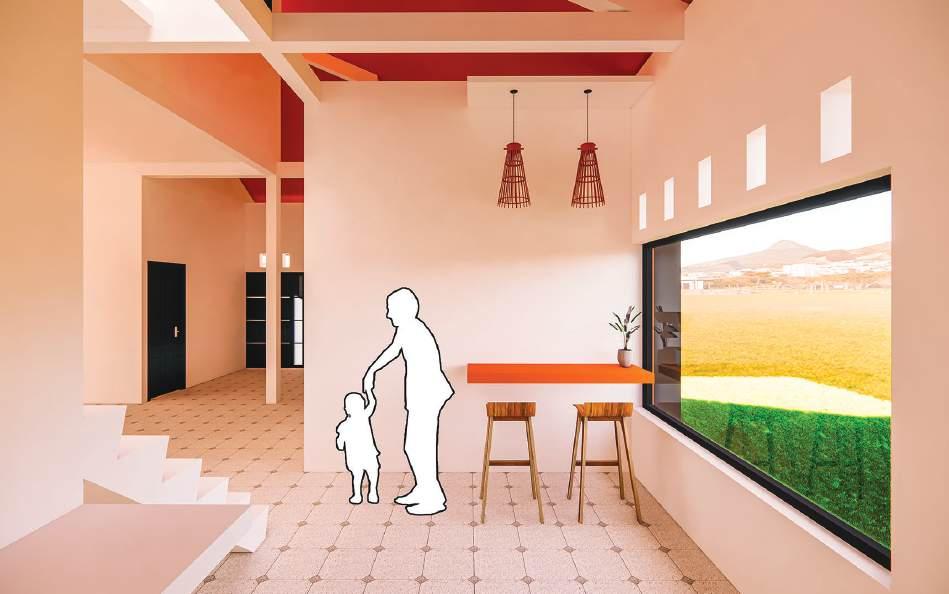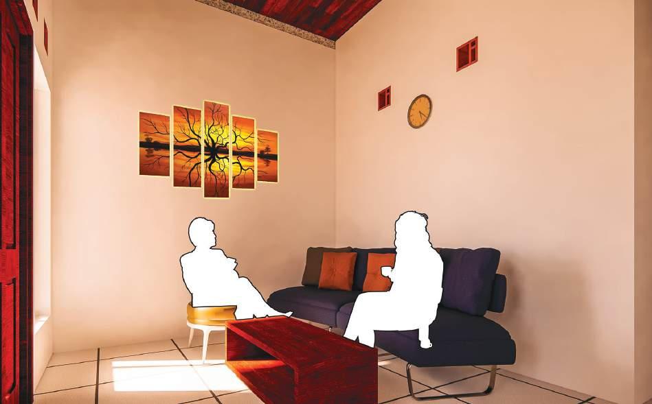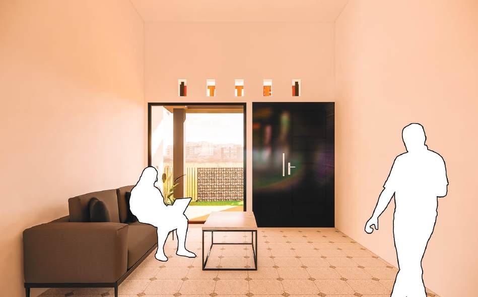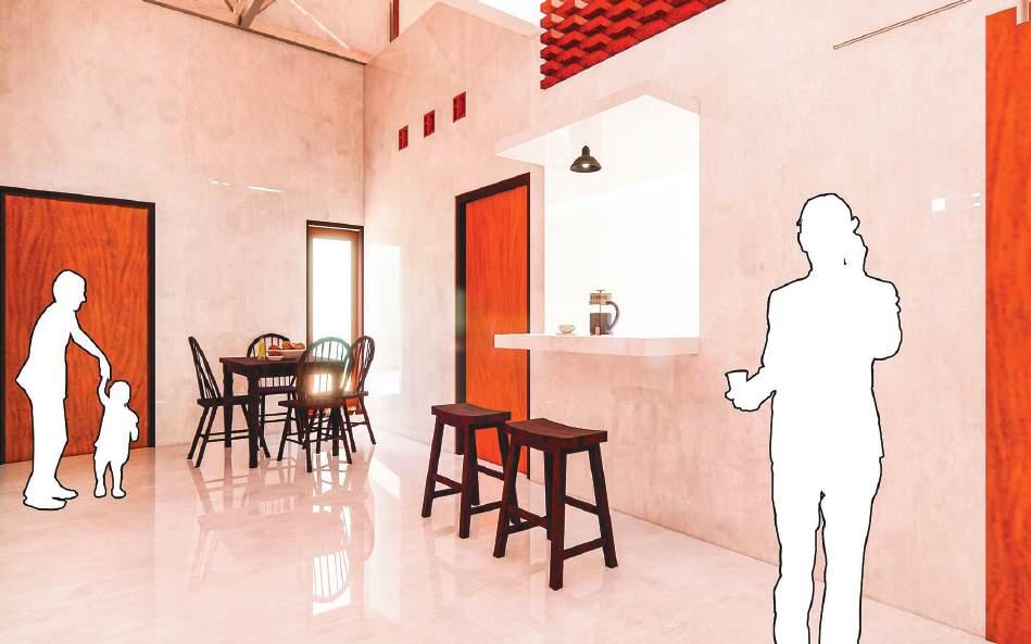 Adhi Wicaksono Konsep Rumah Tinggal Tw. berfokus pada keseimbangan antara fungsi, kenyamanan, dan estetika dalam kehidupan sehari-hari (konteks sekitar). Dengan mempertimbangkan kebutuhan ruang yang efisien dan suasana yang hangat dengan warna jingga/coklat, rumah ini mengutamakan penataan yang fleksibel dan pemanfaatan pencahayaan alami untuk menciptakan lingkungan yang sehat dan hemat energi. Desain interiornya mengadopsi pendekatan minimalis yang menghadirkan suasana tenang dan rapi, sementara elemen-elemen hijau turut ditambahkan untuk memberikan kesegaran serta mendukung suasana rumah yang harmonis dengan alam sekitar.