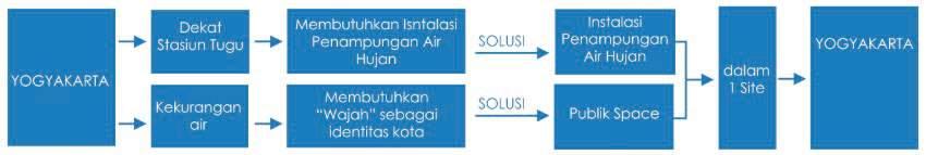 Isu yang kini sedang dihadapi oleh Yogyakarta sendiri adalah kekuarangan air tanah. Oleh karena itu, perlu disediakan area resapan air berupa taman dan Instalasi penampungan air hujan untuk menabung air. Air yang ditabung dapat digunakan untuk menyiram tanaman dan flash budaya toilet.