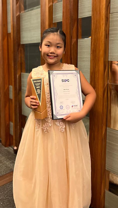 Tung, 4W performed in the Singapore International Piano Competition (SIPC) Thailand Preliminary Round 2023. She earned the second highest score and received a gold medal. As a gold medalist, she was selected to perform in the SIPC 2023 Final Round, representing Thailand in the category of Piano Examination Grades 4 - 6. Her renditions of “Starry Dome” by George Nevada and “Mister Trumpet Man” by William Gillock resulted in the 6th place prize for Asia overall. The Final Round featured performers from Thailand, Singapore, Indonesia, China, Vietnam and New Zealand. It was a great experience for Dalila to represent Thailand in this prestigious piano competition on the international stage! Enjoy her performance here: https://youtu.be/isc91zv_Li0