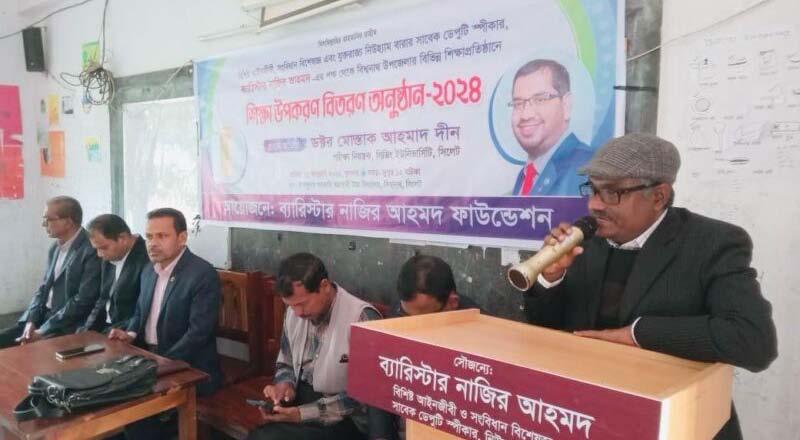 Desk report: Educational materials have been distributed to 17 educational institutions of ‘Upazila and Municipality’ area in Biswanath, Sylhet by former Deputy Speaker of London Borough of Newham, prominent lawyer and constitution expert Barrister Nazir Ahmed.