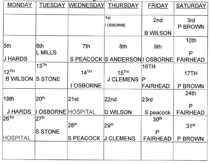 Sunday August 4th service 10.30am M Beadle.