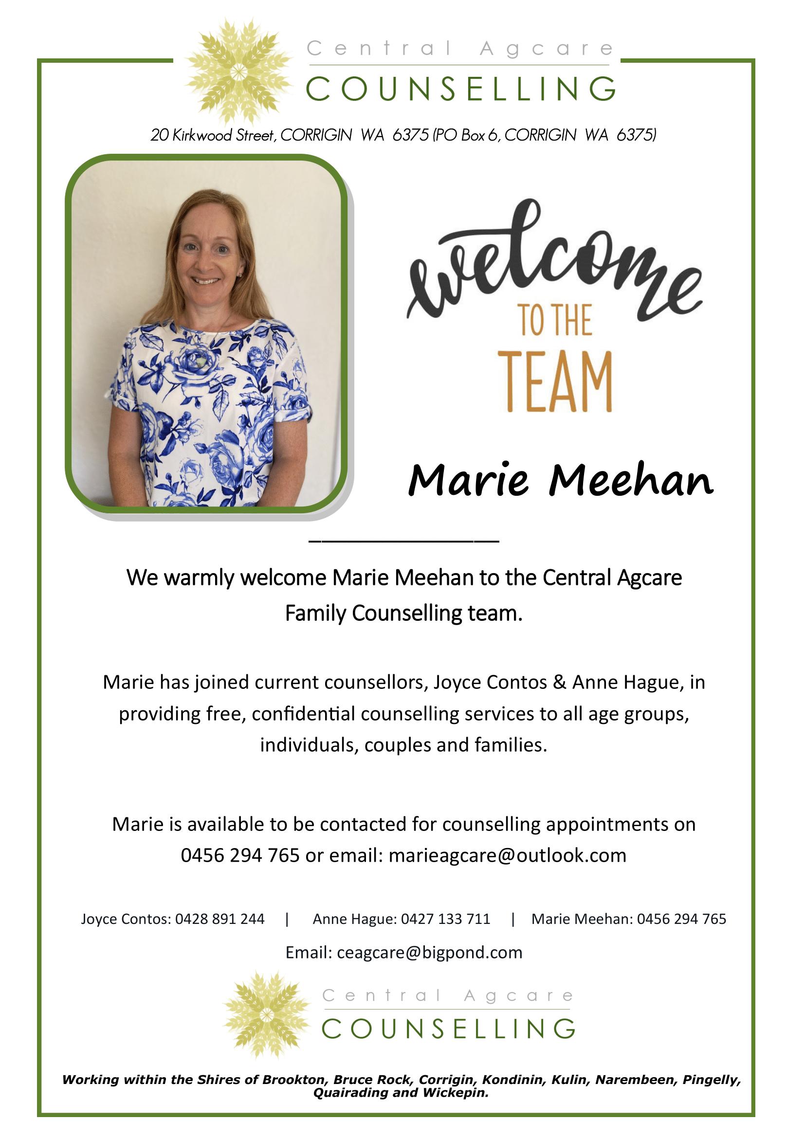 Thursday 24th April. Our Financial Counsellors are coming to the Quairading CRC once a month through 2025 to meet with you face to face. Appointment times are 9am, 10am and 11 am Call 9622 2828 to book.