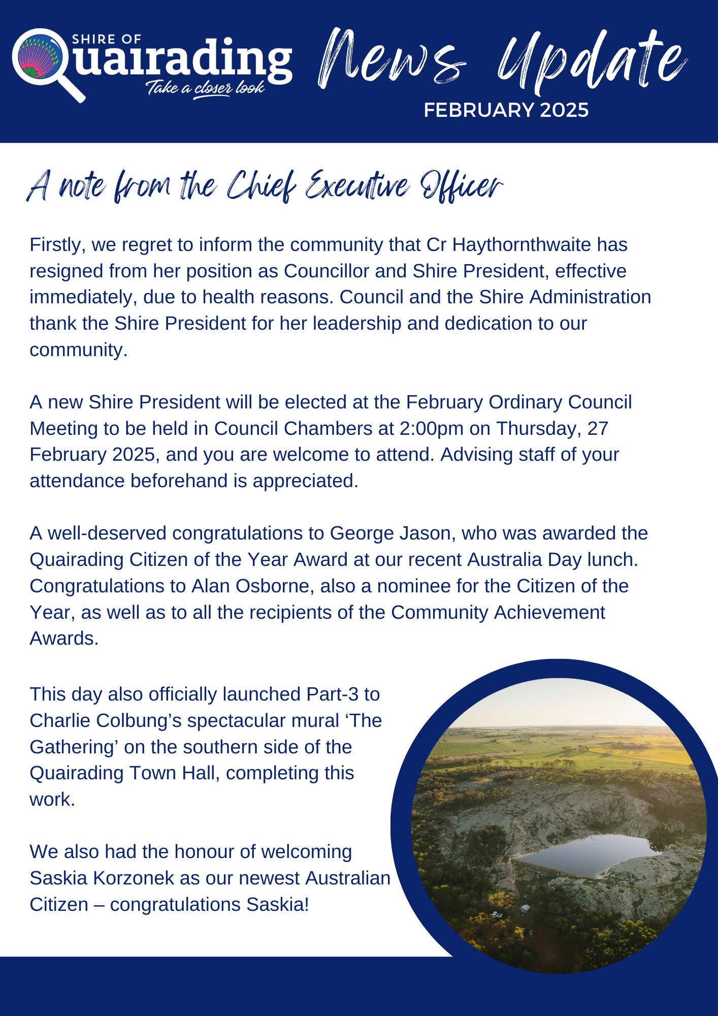 Quairading’s monthly publication since 1991. Proudly produced and printed by the Quairading CRC.