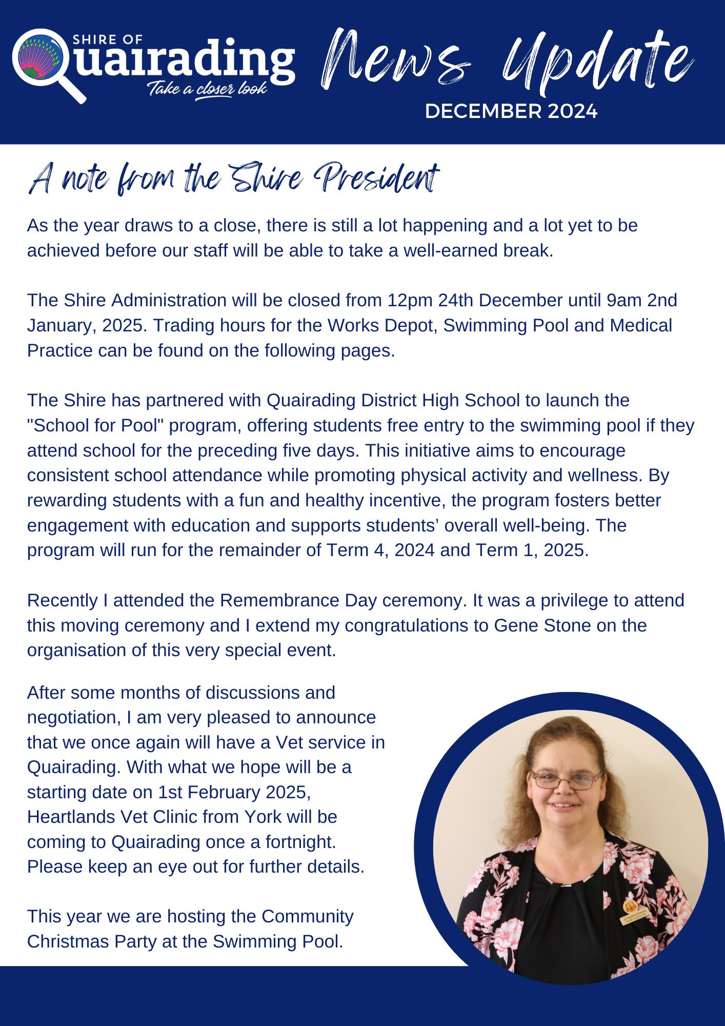 For all enquiries: Banksia Bulletin 1 Parker Street, Quairading WA 6383 (08) 9645 0096 admin@quairadingcrc.com.au