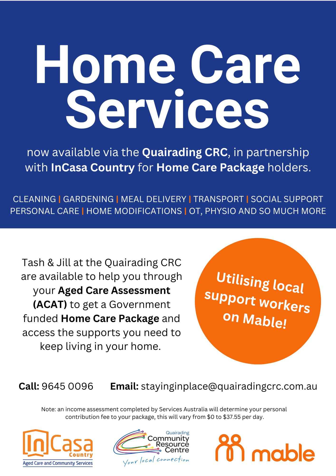 Last month we held a great Staying in Place info session including a show and tell from Paula & Tracey of the Quairading Co-op meal service available to our Home Care Package clients (and to entire community in fact). We ran through the assessment process to get a Home Care Package, and all the great supports the funding from a package can be spent on to help older people remain living in their homes. As always, if you want to learn more about Home Care Packages, about our role and service offering or anything else, just pop in or book a time for a chat.