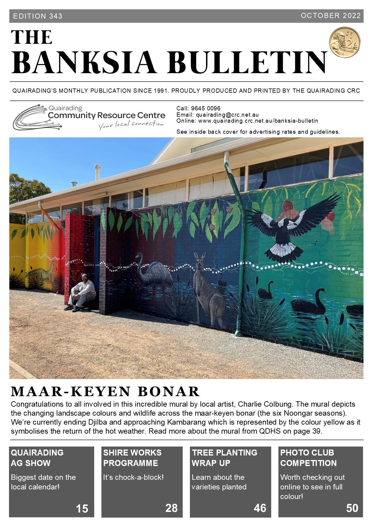 The Banksia Bulletin is published every month by Quairading Community Resource Centre Inc. ABN 69 129 806 857
