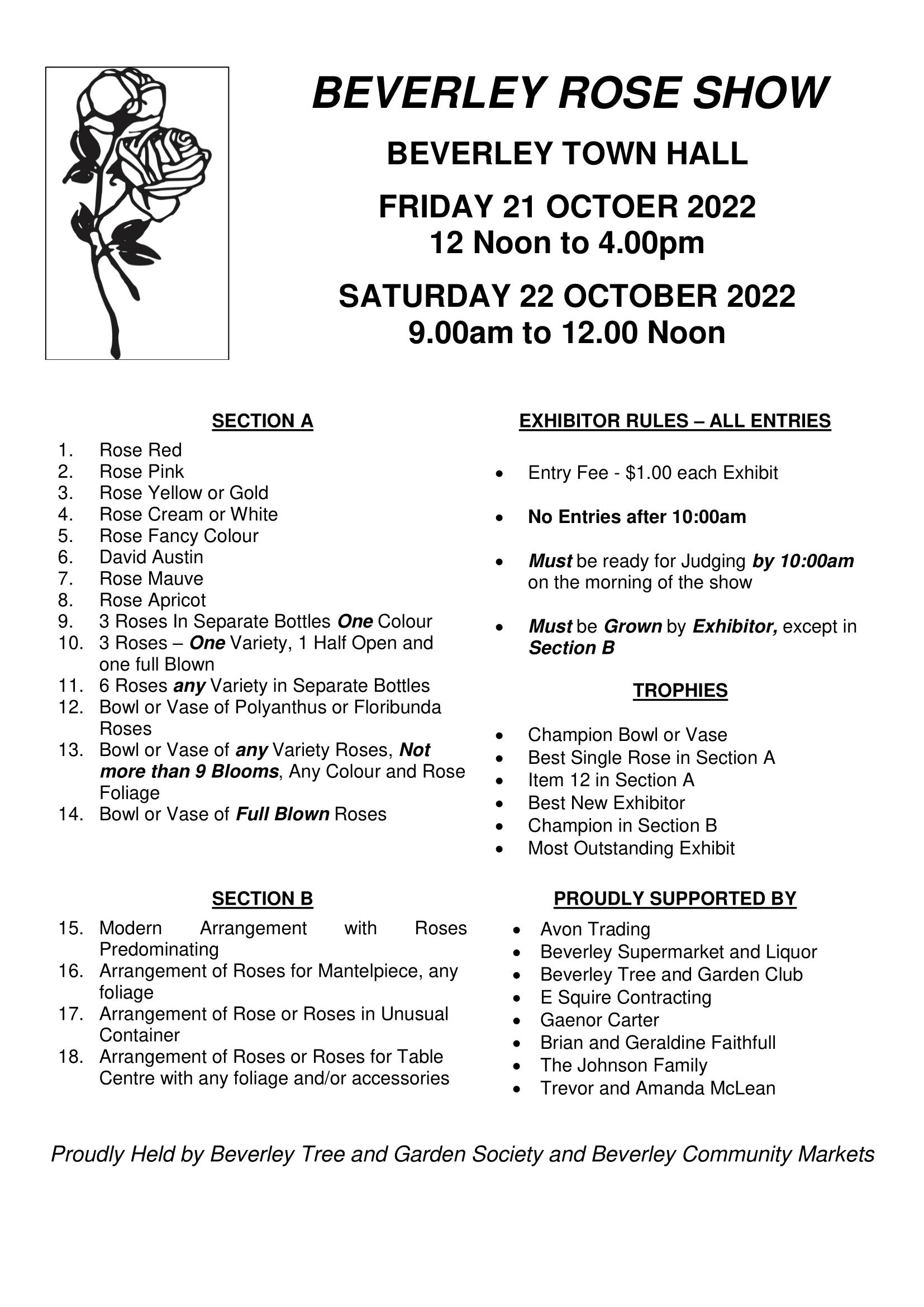 We’re in need of some volunteers to lend a hand at the Bar and at the Info Point on show day just for an hour or so. Please contact Jo Hayes: 0428 466 219 or Graeme Ellis: 0409 098 300, to find out more. Many thanks!
