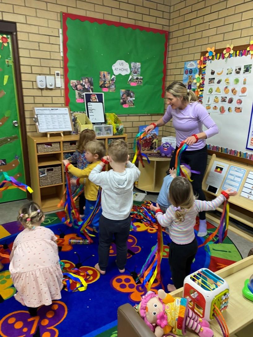 We had a parent, Kate come in and do some yoga and dancing with the children, which she’s done a few times now and the children really enjoy it. The children read a book with her called “We’re going on a bear hunt” and acted out the story as it was read to them.