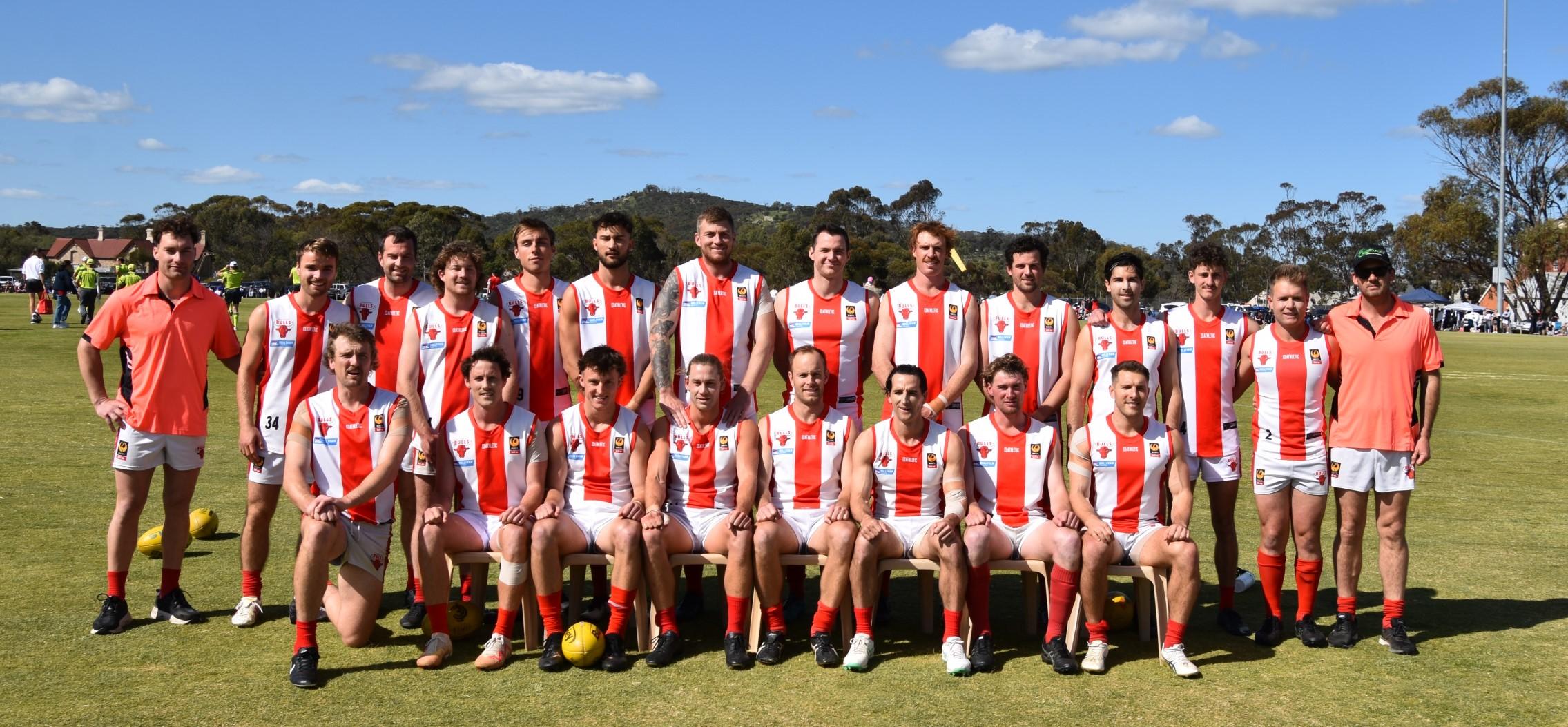 2024 League Premiership Team. Standing: Brayden Andrews (runner), Lachlan Gelmi, Freddie Clutterbuck, William Hadlow, Jake Stacey, Connor Klemke, Josh Marshall, Max Vining, Ethan Brown, Ryan Powell, Lucas Pereira, Ryan Jarman, Andrew Walker, Scott Walker (runner). Front: Tom Lee, Rhys Holdman, Lachlan Davis, Ben Rushforth, Sean Hayes, Kane Mitchell, Connor Anderson, Chris Scafidi.