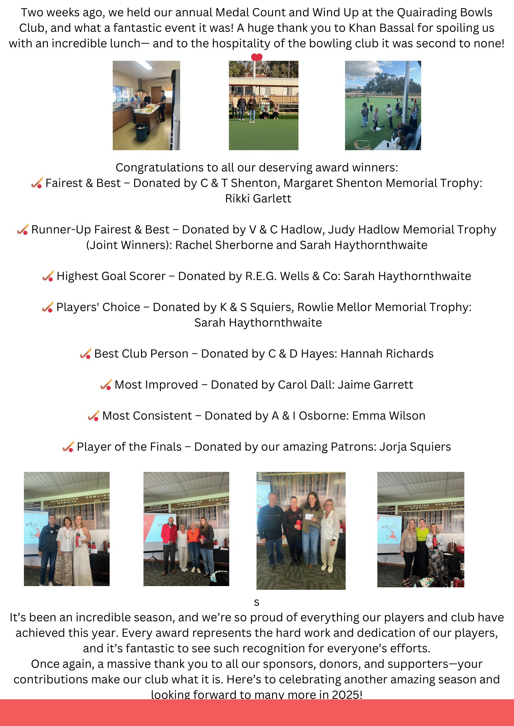 The St John WA – Quairading Sub Centre Annual Review Meeting (ARM) was held on Thursday 15th August. It was a great night and our committee is as follows: