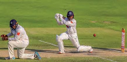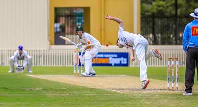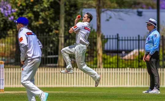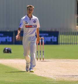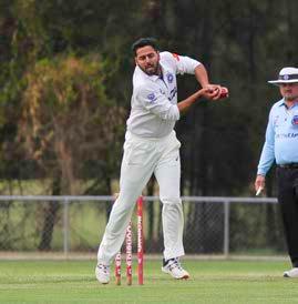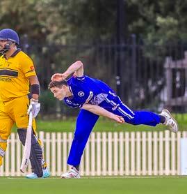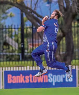 Winning the toss and electing to bowl in their 50-over one-day match against Blacktown Mounties, Bankstown Sports Bulldogs captain Daniel Solway let one of this season’s new recruits to the club loose on the hapless Mounties’ batsmen who mostly had no answer. Ryan Felsch has continued to strive hard since arriving at the Bulldogs and gets better game-bygame - a testament to his commitment and hard-work ethic. Felsch put on a clinical demonstration of line and length bowling on a Joe McAleer wicket that gave him just enough assistance to wreak havoc on the locals. Indeed, Felsch claimed four of the Mounties’ top five batsmen and claimed a thoroughly-deserved and stunning six wickets for meagre 50 runs off his allotted 10 overs. This broke the Mounties’ spirit and Liam Marshall and George Balderson chimed in with two wickets apiece to completely decimate Blacktown who were all out in the 36th over for 172. Chasing a relatively modest 173 for victory, the Dogs were in some shock with both openers gone within two overs. However, Solway stabilsed the innings with a stoic 67 not out and the other batsmen around him all got decent starts with Zeeshaan Ahmed (33) and Brendan Smith (21 in quick time) helping put the balance back in the Dogs’ favour. Balderson (31 not out) and Solway ensured the Bulldogs reaped the rewards of the bowlers’ efforts and won the match just four wickets down at 4 for 173 in the 40th over.
