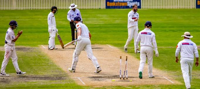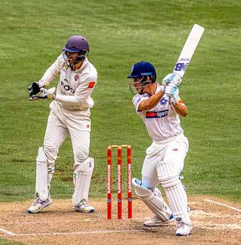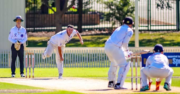 stunning figures of 5 wickets for just 44 runs off 28.2 overs, which included 6 maidens. Constantinou was incredibly unlucky not to snare more as he was creating chances with almost every ball to finish with 2 for 37 off 23 overs. Not to be outdone, paceman Ayden Brown chipped in with 2 wickets at crucial times (2 for 18 off 8). Having rolled the visitors for what seemed like a miserly total of just 137 off 69.2 overs, the Bulldog’s run chase was on with plenty of time and overs remaining in the first day. Again, Felsch showed his all-round ability by top-scoring with 52 when batting in the middle order. This was after opener Riley Kingsell set the pace with a hardearned 45 off 85 balls. Unfortunately, many other Bulldogs batsmen fell to spin without troubling the scorers too much. At the end of Saturday, the Dogs were 7 for 107 - still needing a further 31 runs to win on first innings. At the resumption of play on Sunday, the Dogs finally passed the Northern District’s total - but only managed to be 11 runs ahead when all out for 148. So, the day promised an exciting potential outright result and pointed to some necessary strategic decisions – none more than the sporting declaration by the visitors on Sunday after batting 5 for 156 - with a lead of 146 runs. Constantinou was the pick with 3 for 44 and took his tally to 5 for the match, and Felsch’s single wicket to 6 wickets for the match. With 51 overs still to bowled on Sunday afternoon, the Dogs either had to get the runs and win outright or not be bowled out before surpassing Northern District’s total. Chasing victory and a likely home grand final next weekend, the Bulldogs’ batsmen knuckled down to do their job. Again, Kingsell showed his class and ability with a stoic 54 off 90 balls with some glorious drives and deft placement behind the wicket and also a few chances to give the Dogs’ chase some momentum. Along with Ryan Freeman (22) and Alex Kouventaris (18 not out), hard-hitting ‘keeper Cameron Middleton (20 not out off 17 balls) had the honour of belting three massive sixes to get the Dogs a hard-earned but ultimately dominant outright victory.