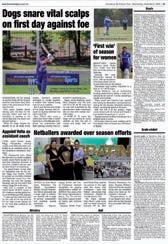 showed the resilience captain Croft has been seeking, and were tradesman-like in their run chase, without any batsmen setting the scoreboard alight. Sam Freedman and Luke Snell both topscored with 32, while other batsmen also contributed to a hard-fought and welldeserved win with the Dogs passing the Wests’ total in the 49th over at 6 for 140.