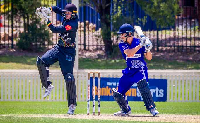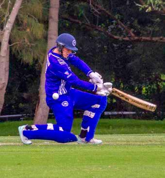 performance. Gilbert was well supported by spinner Sam Cordingley with 3 for 22, including a very sharp stumping by Collison who speedily flicked the ball back onto the stumps as the batsmen had charged Cordingley only to be scrambling to try and get back into his crease. Restricting the home side to 143 was a testament to the tightness of the bowling unit. Chasing down a small total on a wearing wicket was always going to be a challenge but the young Bullpups were the talented Gilbert showed his allround abilities with a brilliant 82 not outincluding 40 runs in boundaries. Coupled with his 4 wickets, Gilbert stood out as a genuine all-rounder with comprehensive skills with bat and ball. Thanks to Gilbert’s outstanding contribution, the visitors got over the line at 7 for 145 posting a valuable first-up win in what is bound to be a tightly fought competition.