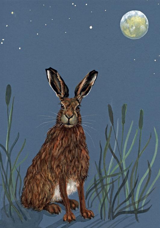 Her love affair with hares began when she lived in the Peak District. “Hares became predominant in my work when my husband John and I were living in the wilds of the Staffordshire Moorlands,” she says. “We had baby hares in the garden – it was absolutely magical.”