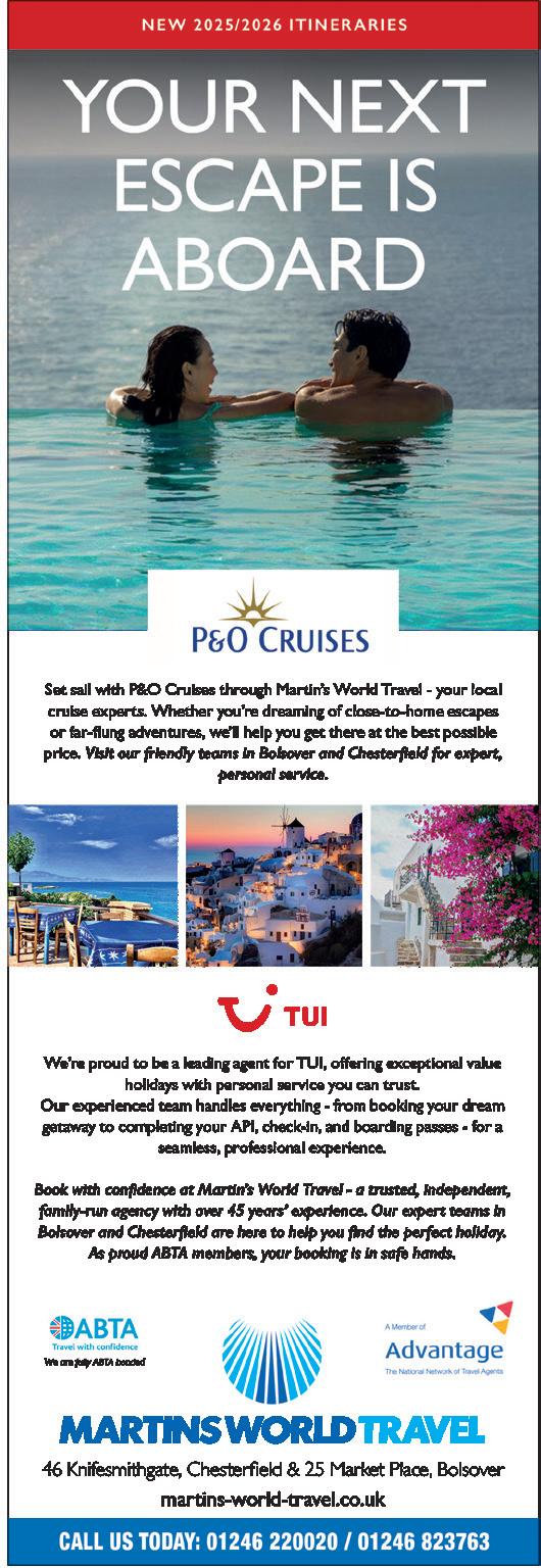 Martins World Travel, 25 Market Place, Bolsover, S44 6PN T: 01246 823763 martins-world-travel.co.uk www.1st4Cruises.co.uk