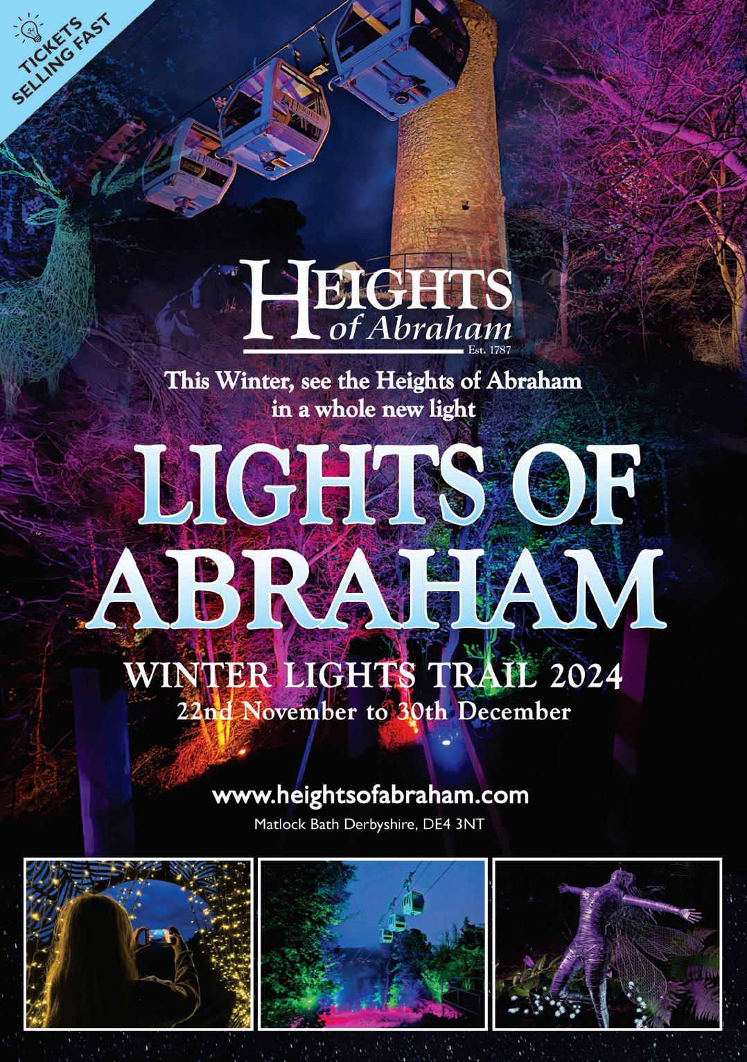 22-Dec 30 Lights of Abraham. This winter, experience the Heights of Abraham in a brand new light as it presents a stunning light trail. Tickets are on sale now! Make your way down the festoon-lit riverside walkway before arriving at the base station to take a moonlit cable car flight across the river and above an avenue of colour. Once you arrive at the summit, set off on the trail that winds through illuminated gardens, across boardwalks and along woodland paths. Look out for the twinkling herons, the fairy gathering, giant stars, the enchanted forest and colourful surprises around every corner. The Vista Bar, Treetops Cafe and Snap Tin catering unit will be open.