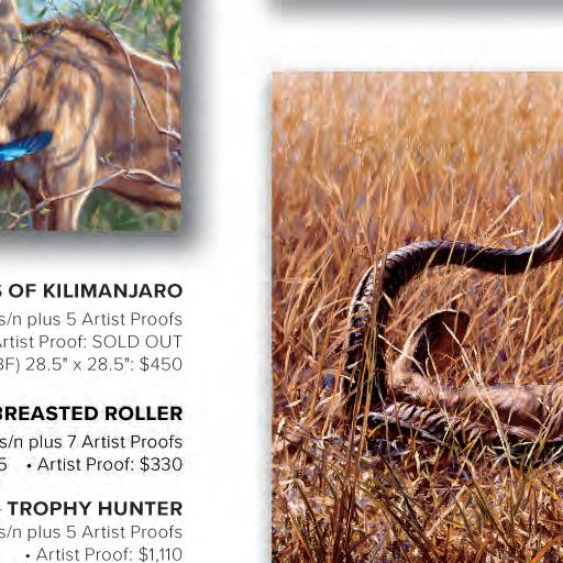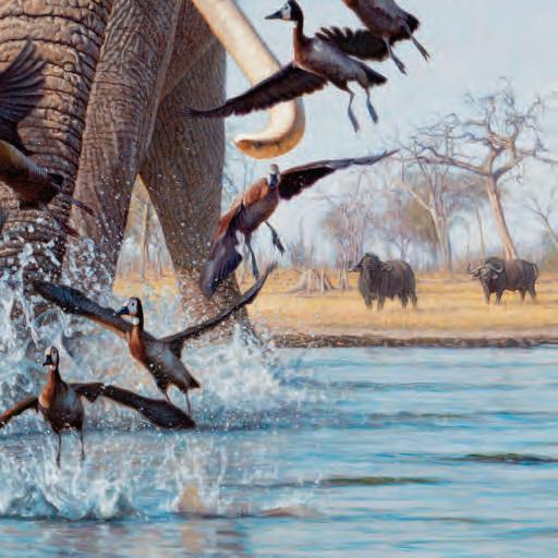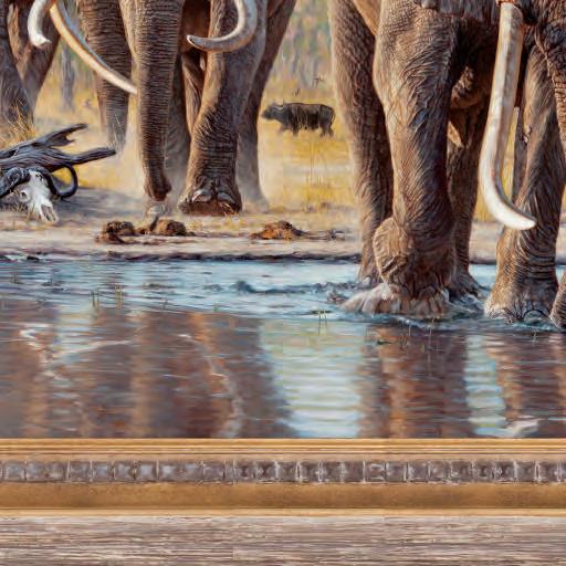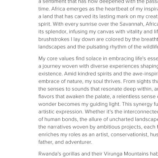 As I ready myself for my 60th expedition to Africa this forthcoming fall, the same exhilaration courses through my veins as it did on my first adventure. The sensation of the Kalahari Desert's hot sands beneath my feet etched an indelible sense of homecoming, a sentiment that has now deepened with the passage of time. Africa emerges as the heartbeat of my inspiration, a land that has carved its lasting mark on my creative spirit. With every sunrise over the Savannah, Africa unveils its splendor, infusing my canvas with vitality and life. The brushstrokes I lay down are colored by the breathtaking landscapes and the pulsating rhythm of the wildlife.