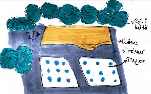 5. Parteri / Dizajni Peizazhor (iden fikimi dhe prezan mi i mostrave, elementeve dhe përmbajtjeve peizazhore në zonën e Pavijonit si relacion me konteks n dhe vet hapësirën / hapësirat e brendshme),