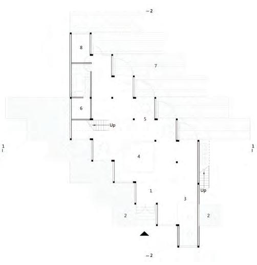 2.Ekspozita 3.Zona e sherbimeve 4.Showroom 5.Zona mul funksionale 6.Zona vip 7.Banjo