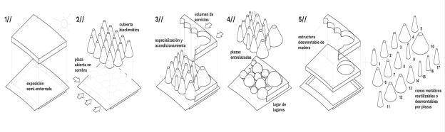 Format konike janë bërë për të rritur rrjedhjen e ajrit dhe si rrjedhojë e modulojnë temperaturën e hapësirë publike duke ofruar kështu një mënyrë eko-miqësore që vizitorët të qëndrojnë githmonë freskët. Poashtu e ka spjeguar edhe procesin e diellosjes përgjatë kodrave i cili figura visht ngjan me konet e cunguara.
