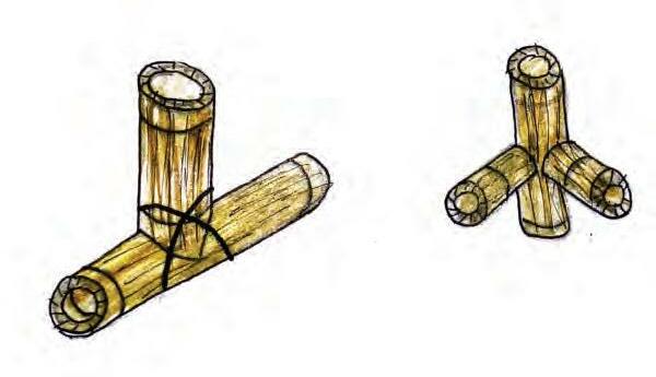 Trarët që formojnë muret janë të gjitha me të njëjtën madhësi. Ato ndahen dhe grumbullohen me drurë të tjerë si një tharëse druri në alë. Muret janë të lidhura me shufra tensioni dhe susta çeliku. Një seri tjetër trarësh, të vendosura pingul me nivelin e kuvertës, që mbulojnë pjesën e brendshme të tendës dhe ngurtësojnë mon min. E gjithë struktura funksionon vetëm nga ngjeshja dhe fërkimi i trarëve të shkaktuar nga grumbullimi i tyre. Lidhja me rripa dhe susta çeliku lejon ndryshimin e dimensioneve të drurit të thahet dhe është në përputhje me natyrën e përkohshme të ndërtesës.Asnjë vidë, gozhdë, kapëse, gjilpërë, vrimë apo pikë zam nuk u përdor për të filluar punën e projek t. [4]