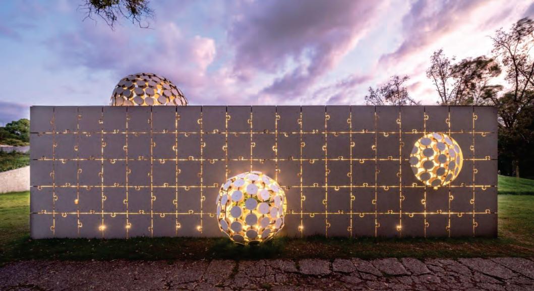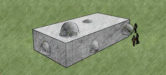 - Përbëhet nga instalime shumëngjyrëshe në forme kubike me panele fotovoltaike per te mbuluar pavionin me energji.