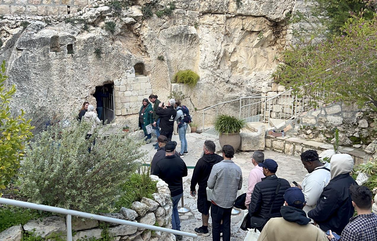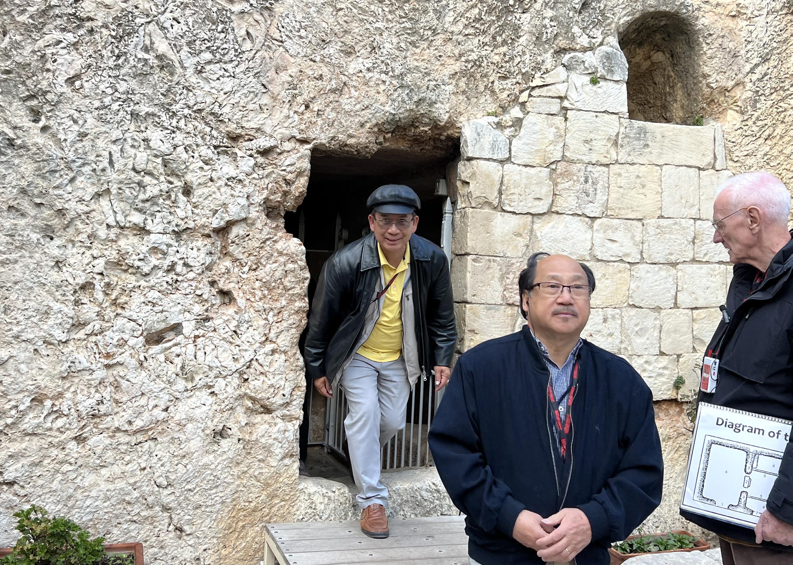 Trong chuyến đi thăm Xứ Thánh – Do Thái 10 ngày vào đầu tháng 2 năm nay, tôi cùng với 29 Mục sư đi đến Garden Tomb - khu vườn có ngôi mộ chôn Chúa. Gần ngôi mộ là một mô đất cao mà tín hữu Tin Lành cho rằng đó là đồi Gô-gô-tha (Đồi Sọ) ở ngoài tường thành ngày xưa (Giăng 19:17-18). Các tín hữu Chính Thống giáo và Công giáo La-mã thì cho rằng ngôi mộ chôn Chúa ở tại một địa điểm khác, đó là bên trong nhà thờ Church of the Holy Sepulchre! Trước cửa mộ, có khu vực dành cho du khách tập họp từng nhóm để thờ phượng Chúa. Sau khi viếng mộ, chúng tôi có buổi nhóm thờ phượng Chúa và dự Lễ Tiệc Thánh tại một điểm nhóm trong khu vườn. Hướng dẫn viên trong khu vườn nầy là một