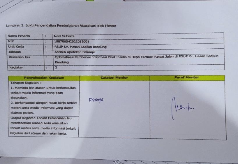 Aktualisasi dari “ Optimalisasi Pemberian Informasi Obat Insulin Injeksi di Depo Farmasi Rawat Jalan di RSUP Dr. Hasan Sadikin Bandung” ini untuk mengatasi isu “Belum Optimalnya