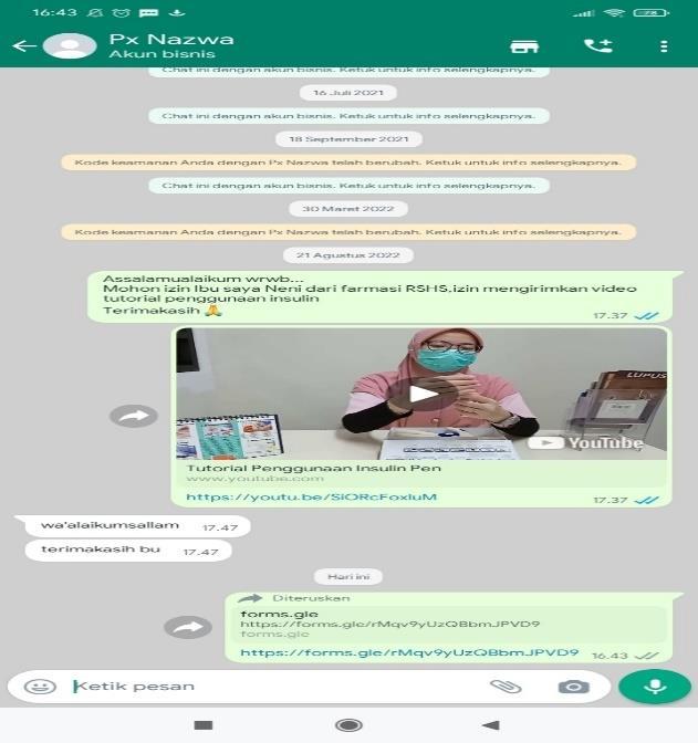 1. Meminta izin kepada pasien untuk kesediaan pasien menerima video edukasi terkait penggunaan obat insulin injeksi.