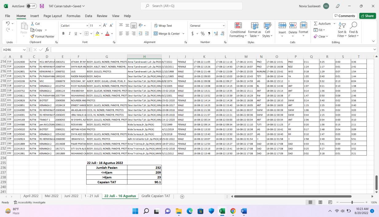 Merekap data TAT pemeriksaan cairan tubuh dari bulan