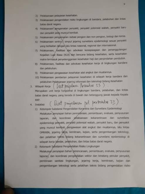 Pelaksanaan penindakan pelanggaran di bidang kekarantinaan kesehatan Pengelolaan data dan informasi di bidang kekarantinaan kesehatan. Pelaksanaan jejaring, koordinasi, dan kerja sama di bidang kekarantinaan kesehatan. Pelaksanaan bimbingan teknis di bidang kekarantinaan kesehatan. Pelaksanaan pemantauan, evaluasi, dan pelaporan di bidang kekarantinaan kesehatan, danpPelaksanaan urusan administrasi KKP.