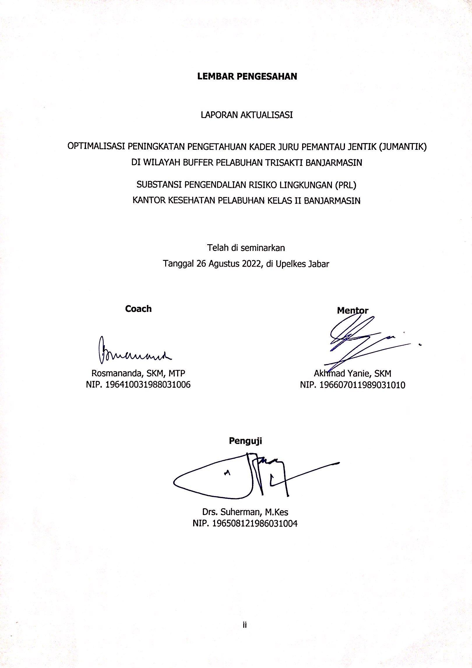 Bahwa aktualisasi untuk menyelesaikan isu utama Belum Optimalnya Pengetahuan Kader Jumantik Di Wilayah Buffer Pelabuhan Trisakti Banjarmasin telah dilaksanakan.