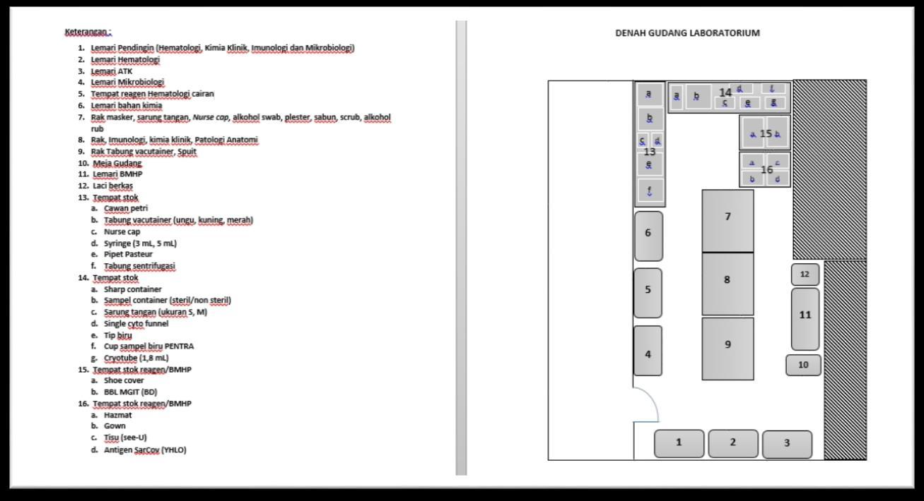 Jika kegiatan pembuatan denah gudang ini tidak dilakukan maka letak barang akan sulit diidentifikasi sehingga menyulitkan petugas gudang maupun petugas laboratorium saat melakukan kegiatan keluar/masuk barang.