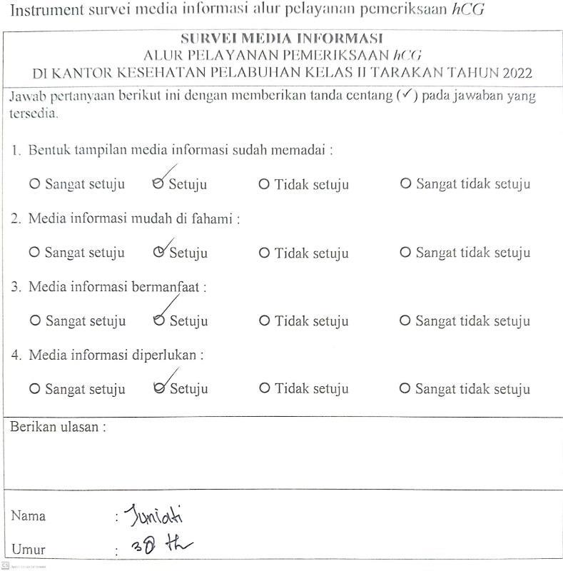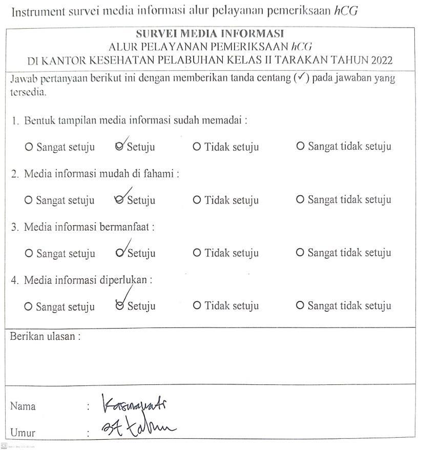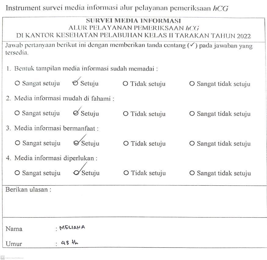 Gambar 4.13 Instrument survei media informasi alur pelayanan pemeriksaan hCG