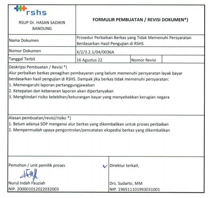 Perbendaharaan di RSUP Dr. Hasan Sadikin Bandung” bertujuan agar pelacakan dokumen yang dikembalikan dapat dilakukan dengan mudah serta menghindari terjadinya kesalahpahaman antar karyawan.