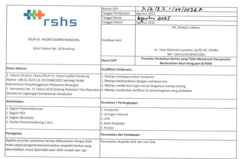 Dikembalikan Bagian Perbendaharaan di RSUP Dr. Hasan Sadikin Bandung