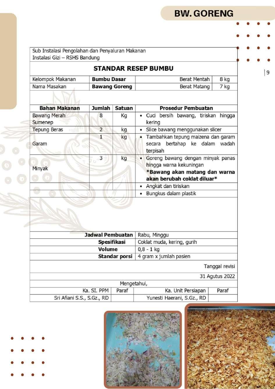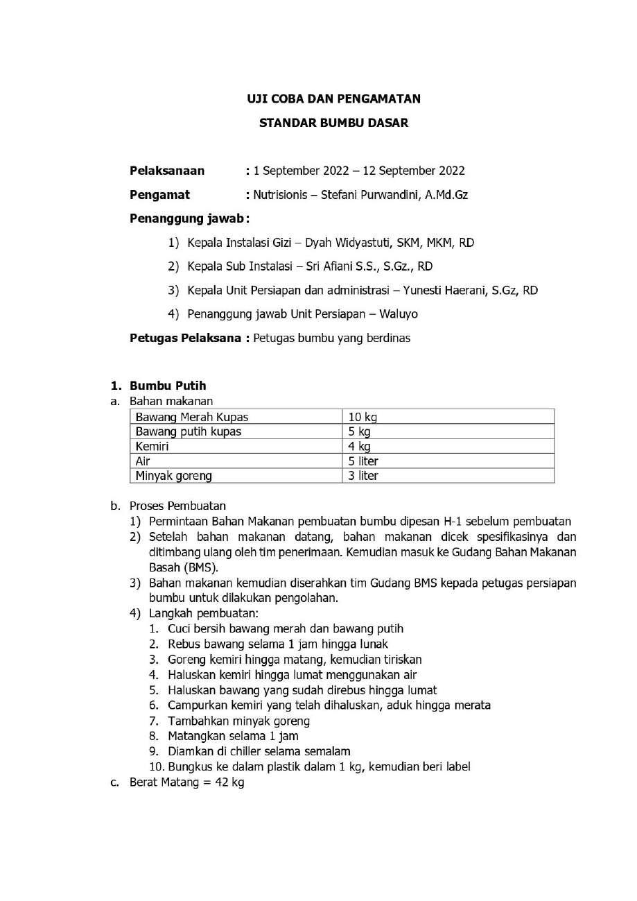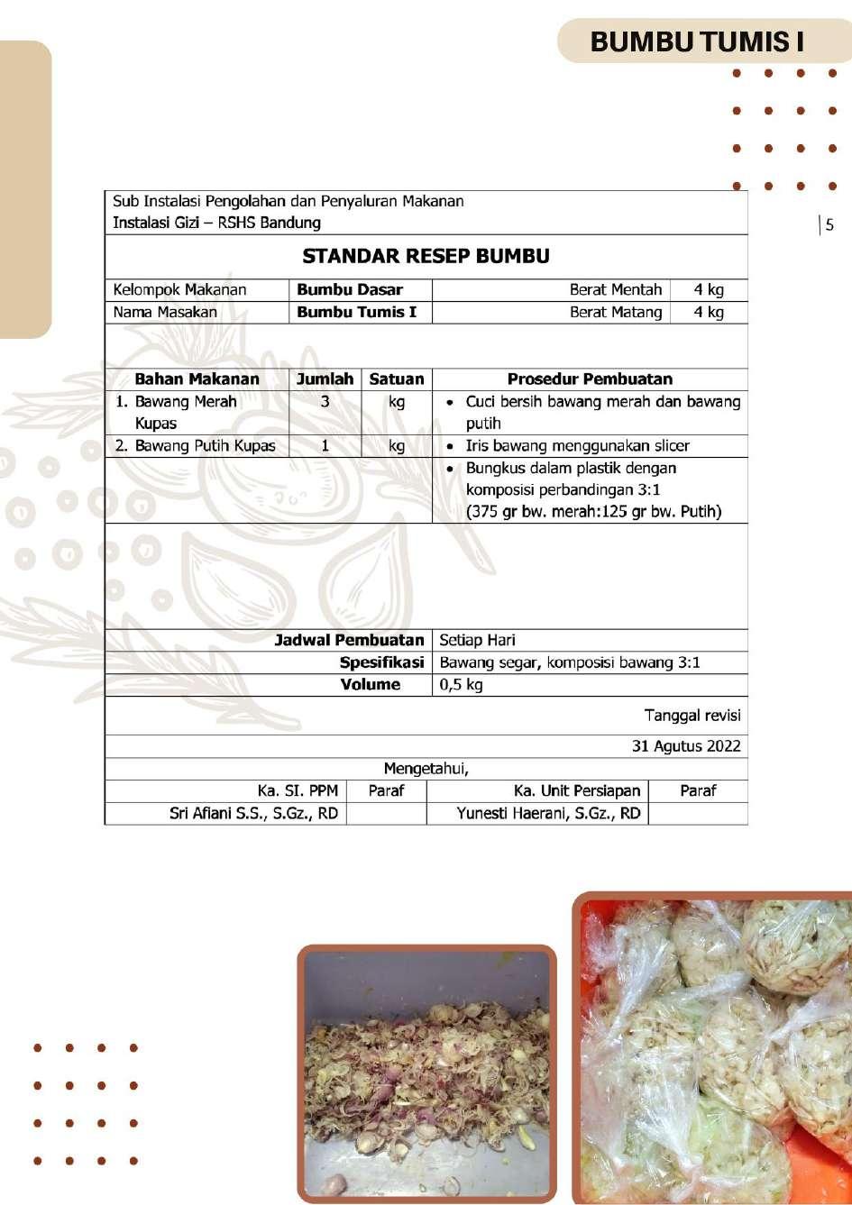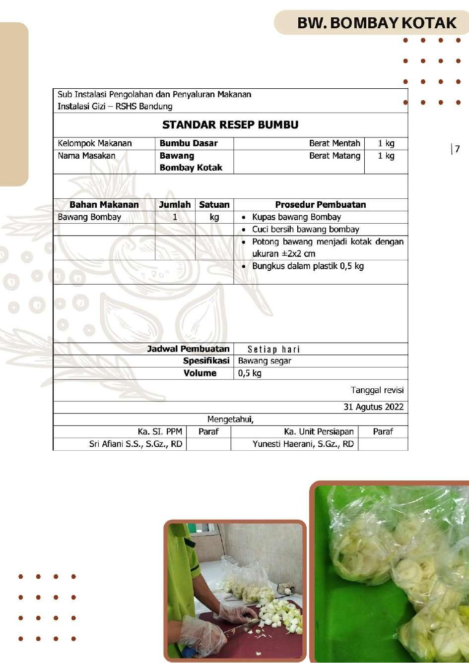 “Pembuatan Buku Standar Bumbu Baru di Instalasi Gizi RSUP Dr. Hasan Sadikin Bandung”. Laporan aktualisasi ini merupakan salah satu persyaratan dalam kegiatan latihan dasar Calon Pegawai Negeri Sipil yang harus dipenuhi sebelum diberikan penugasan langsung terkait bidang pekerjaan yang akan ditekuni selanjutnya.