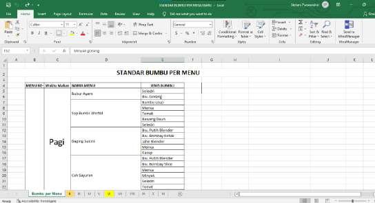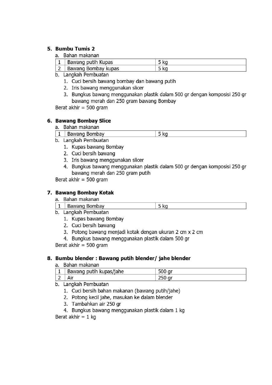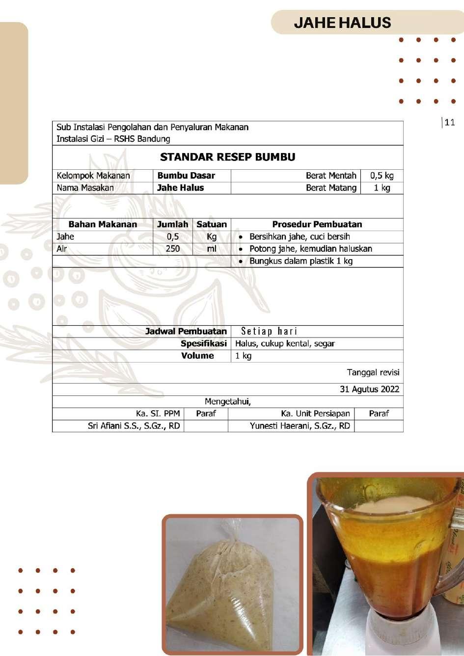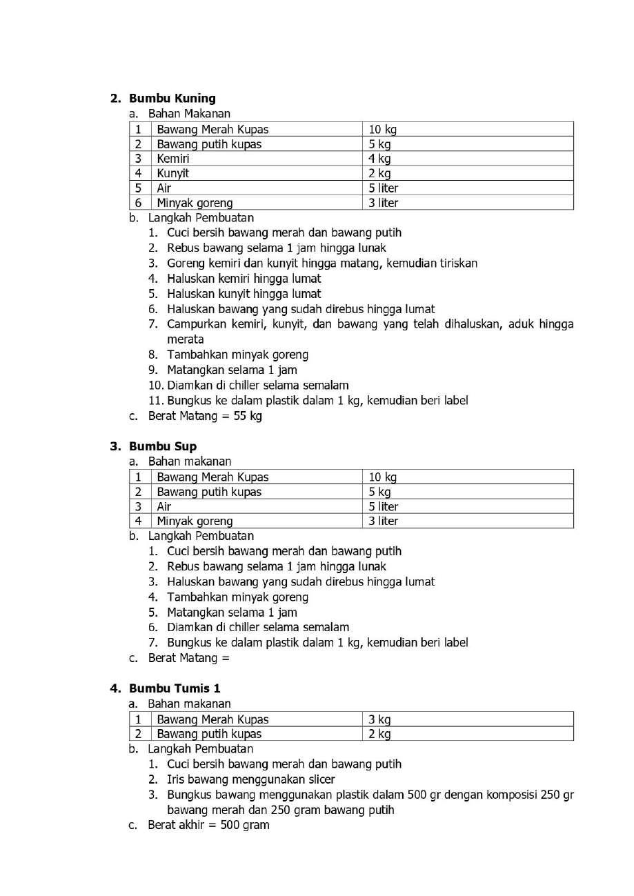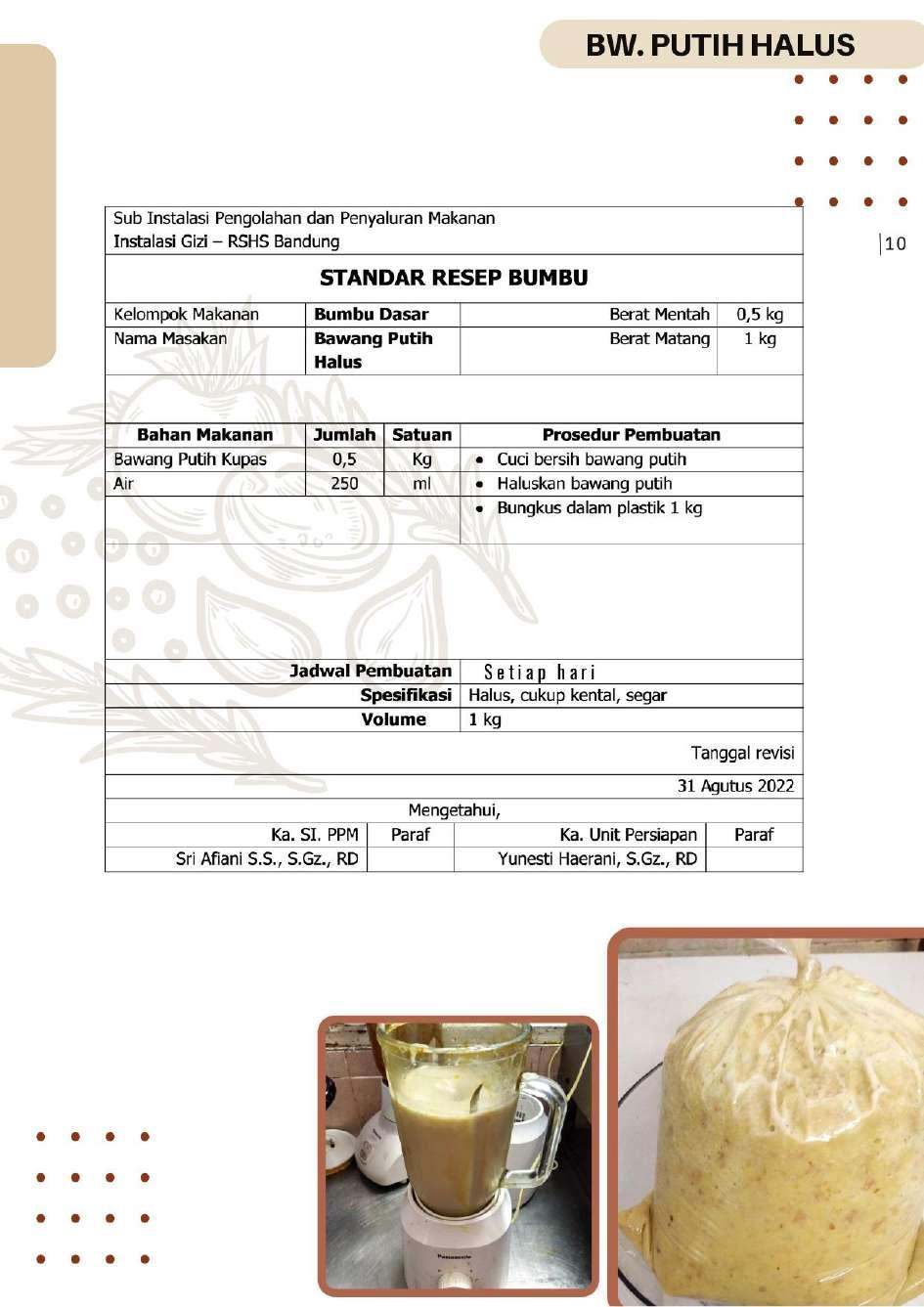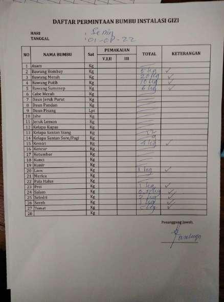 bumbu, penanggung jawab unit Sub Instalasi Pengolahan dan Penyaluran Makanan